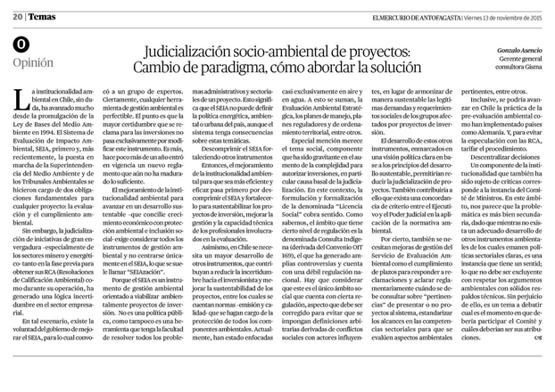 Por Gonzalo Asencio de GISMA, en El Mercurio de Antofagasta.- La institucionalidad ambiental en Chile, sin duda, ha avanzado mucho desde la promulgación de la Ley […]